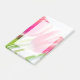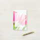 Des notes collantes avec une belle photo de printemps avec 2 tulipes roses et des feuilles vert vif.