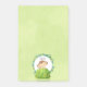 Notes collantes de grande taille avec l'illustration d'un petit singe qui regarde derrière un buisson vert et qui dit bonjour. Entouré d'une couronne de feuilles tropicaux. Situé sur un arrière - plan d'aquarelle vert olive.