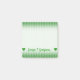 Ce design de notes présente un motif de rayures/lignes vert clair et vert foncé. Il comporte également un nom personnalisé situé en bas, en texte vert, entre deux formes cardiaques. [~Z0000122]