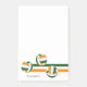Ce bloc-notes à thème volleyball comporte 3 boules de volley vertes, oranges et blanches disposées au hasard sur des bandes horizontales vertes et orange minces au bord inférieur du pad - personnalisez avec le nom de l'athlète ou de l'entraîneur - par katz_d_zynes