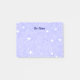 Des notes collantes personnalisées avec des lettres vintages bleues et une gravure arrière - plan d'un ciel nocturne avec des étoiles en bleu clair et blanc.