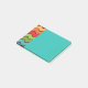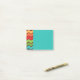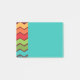 Ces notes Post-It ont un design des années 1970 de lignes de zigzag en jaune, orange, rouge, vert et bleu sur un champ de brun.