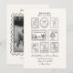 This hand drawn save the date features trendy, hand-drawn postage stamps with cute and whimsical wedding-themed doodles and sayings written in an adorable, handwritten style. The back of the card features a large postage stamp frame with a placeholder for your own photo. There is also an editable placeholder to indicate your wedding website URL, which can also be deleted if the URL is not yet available. Comes in a creamy white shade.