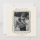 This hand drawn save the date features trendy, hand-drawn postage stamps with cute and whimsical wedding-themed doodles and sayings written in an adorable, handwritten style. The back features a large postage stamp frame for your photo. Comes in beige and a unique square shape.