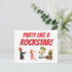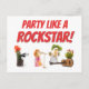 Carte d'anniversaire de nourriture amusante jeu de jeu drôle vege carte postale. Cette carte d'anniversaire amusante et décalée comprend un groupe de légumes hilarant qui fera sourire n'importe qui. Avec une serviette punky sur le clavier, une pomme de terre bouclée sur les tambours, une petite chaux cool qui balaie la guitare, et une pomme de terre aux cheveux orangés fantaisie sur les voix, cette carte présente le groupe le plus fou, le plus cool et le plus amusant de tous les temps ! Idéal pour les amateurs de musique et ceux qui ont un sentiment d'humour, cette carte ajoute un niveau supplémentaire de plaisir à toute célébration d'anniversaire. Les personnages ludiques associés au message audacieux "Party Like a Rockstar" en font un choix de carte unique pour toute rockstar de votre vie. Bon appétit !