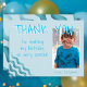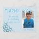 Un carte de remerciements d'anniversaire mignon avec une photo et merci note pour vos amis et votre famille. Téléchargez votre photo et personnalisez la carte avec votre nom. La carte a des vagues bleues. Super comme carte de remerciements pour les garçons.