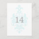 Postale Aqua Subtle Damask Numéro de la table Carte postal