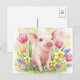Aquarelle Joyeuse Fleurs de porc mignonnes Printemps Jeunes animaux rose carte postale