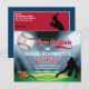 Cette carte de baseball amusante et sportive Bar Mitzvah Save the Date peut être utilisée comme carte postale ou comme carte avec enveloppe en supprimant les éléments au dos de la carte dont vous n'avez pas besoin. Ce thème de baseball unique Bar Mitzvah enregistrer la carte de date dispose d'un stade de terrain de baseball nocturne avec un diamant de baseball vert et marron avec des spots lumineux brillant sur la silhouette noire d'un joueur de baseball se tournant vers le bas pour attraper une balle de sol. Un baseball blanc et rouge avec une étoile juive bleu clair de David est dans le coin supérieur gauche avec un look sportif rouge et blanc Enregistrer le libellé de la date à droite de la balle avec une queue qui se balancera sous le mot Date. Le côté arrière de ce Baseball Bar Mitzvah enregistrer la carte de date est fait en rouge et bleu avec une autre silhouette de joueur de baseball à la plaque de maison prêt à battre. Supprimez le cachet postal et les lignes et l'adresse de retour à l'aide de l'écran de conception lorsque vous utilisez l'option bleu MODIFIER PLUS. Ensuite, il suffit de sélectionner les lignes et d'utiliser votre bouton de suppression, ou laisser comme il est pour envoyer par la poste comme une carte postale à la place.