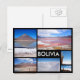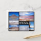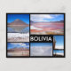 Carte postale d'un collage avec de multiples photos des paysages colorés du désert d'Atacama dans la zone salée d'Uyuni sur l'Altiplano dans les Andes au sud de la Bolivie, près de la frontière avec le Chili avec un cadre noir et le texte : 'Bolivie'.