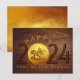 Grande carte personnalisée 2024 + Bonne + Année du Dragon + illustration de dragon en papier découpé doré dans un cercle doré + fond en bois. Vous pouvez facilement modifier le texte (couleur, taille et position de la police) si vous le souhaitez en cliquant sur le bouton personnaliser. Conception sur carte postale horizontale avec papier doré texturé (image imprimée) à l'intérieur. Parfait pour le Nouvel An chinois de l'année du Dragon 2024 ou l'anniversaire (personnes nées dans l'année du Dragon).
