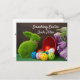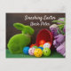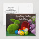Adorable carte postale de lapin de Pâques vert avec de vraies boulettes et tulipes violettes. Texte personnalisé avant / inverse. Champ adresse personnalisable. Si vous achetez en vrac, vous pouvez remplacer le texte du champ d'adresse par des points ou des tirets ou supprimer complètement.
