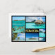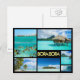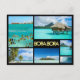 Carte postale d'un collage avec de multiples photos de plages, bungalows sur l'eau et action sous-marine sur l'île tropicale Bora Bora près de Tahiti en Polynésie Française dans l'Océan Pacifique dans un cadre noir avec en jaune le texte : 'Bora Bora'.