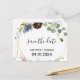 Ce bordeaux fleuri et verdoyant, sauf la carte datant, est parfait pour un mariage d'hiver. L'élégant design boho comprend des fleurs couleur marine, rose vif et des fleurs à l'ombre du vin avec des détails artistiques au crayon.