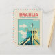 Un grand cadeau pour tous les amateurs de Brasil idéal pour offrir ou envoyer à un ami, belle carte postale rétro original illustration avec vue sur la Catedral Metropolitana à Brasilia, Brasil
