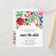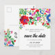 Parfait pour une destination ou un mariage à thème mexicain, cette carte postale présente un cadre en voûte de fleurs et de feuillage inspiré de la broderie colorée d'artisans mexicains.
