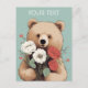 Voici une carte charmante représentant un ours berçant un bouquet de fleurs vibrantes sur un fond vert luxuriant. Parfaite pour toutes les occasions - anniversaires, félicitations, expressions de gratitude, Saint-Valentin, Journée internationale des femmes, fête des mères, journée des grands-parents, et plus encore. Cette carte délicieuse est une façon polyvalente et sincère de transmettre vos vœux chaleureux. De plus, elle constitue une option élégante pour une carte de remerciement, vous permettant d'exprimer votre gratitude avec une touche de sophistication. La carte offre une touche personnelle, permettant aux individus d'écrire leur propre message, qu'il s'agisse d'exprimer l'amour, la gratitude, des vœux de rétablissement, ou tout autre sentiment de leur choix.