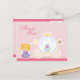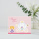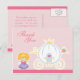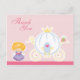 Cette carte postale de remerciement a un thème de princesse mignonne. Sur le devant, une princesse aux cheveux blonds se tient à côté d'une calèche royale. Il y a un arrière - plan de polkadot rose et blanc. À l'arrière, on trouve un arrière - plan de polkadot rose et blanc avec un bord de pétoncle rose en haut et en bas. Il y a une glissière en verre sur un coussin dans le coin inférieur. Vous pouvez facilement customiser votre message de remerciement au dos. Copyright © Zenware Designs