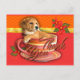 Un chiot assis dans une tasse aux coins fleuris, carte de voeux. Ajoutez facilement votre propre message à l'intérieur