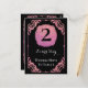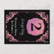 Design de parties scintillant rose élégant pour ajouter un peu de glamour à votre prochaine soirée de jeu Bunco. Une carte de table élégante et élégante permet à vos invités de reconnaître la table à laquelle passer. Thème noir, rose et blanc. Carte de table numéro deux.