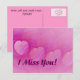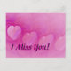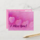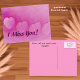 Un design abstrait rose d'une ligne de coeurs sur une carte postale.