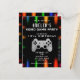 Vidéo Game Party Controller Neon Gaming Anniversaire Invitation. Contrôleur de jeu sur un néon coloré vif sur un arrière - plan noir.