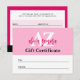 Style propre et moderne avec une attention particulière sur l'une des couleurs les plus tendance de l'année : magenta ! Il est audacieux et féminin, avec une impression lisse et propre. Personnalisez facilement vos propres certificats-cadeaux personnalisés pour votre entreprise de beauté, mode ou mode de vie et plus encore!