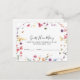 Cette carte classique de devinette de fleurs sauvages colorées est parfaite pour une douche de mariée ou une fête prénatale moderne. Le design présente des fleurs sauvages dessinées à la main en rose, violet, jaune, bordeaux, bleu marine et bleu, disposées en formes magnifiques.