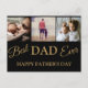 Montrez à votre père à quel point vous êtes spécial avec cette Fête des pères cool et moderne trois photo en or et noir's Day Postcard. Ce design dispose d'un élégant arrière - plan noir avec une pièce à customiser avec trois photos de votre choix. Sous les photos, le texte dit "Best DAD Ever" dans une combinaison de script tendance et de lettres majuscules. En bas de la carte, le texte personnalisable dit "HAPPY FÊTE DES PÈRES". Mettez un message spécial au dos de cette carte postale photo de Fête des pères juste pour papa avec vos noms et un endroit pour mettre votre adresse de retour.
