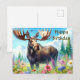 Postale Carte d'anniversaire Bull Moose et fleurs sauvages
