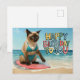 Célébrez dans un style ensoleillé avec cette adorable carte d'anniversaire sur la plage mettant en vedette un chat siamois glamour dans une tenue de plage, entouré de vagues, Parfait pour envoyer des vœux d'anniversaire aux amoureux des chats qui adorent les vibrations côtières et l'élégance féline. Idéal pour les mamans de chats, les filles de la plage ou quiconque fait la fête avec des pattes dans le sable.