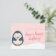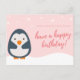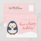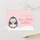 Carte postale d'anniversaire - Manchot illustré rose