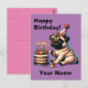 Postale Carte d'anniversaire Pug personnalisable