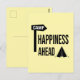 Simple Graphique en texte montrant une petite tente un panneau de camp et un Texte disant : Bonheur devant.