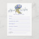 Moderne Elegant Floral Chinoiserie High-Heel Chaussure Conseils et Bien Souhaits Carte de réponse Élevez votre douche nuptiale avec une élégante touche d'art et de sophistication avec notre "Modern Elegant Floral Chinoiserie High-Heel Shoe Advice and Well Wives Response Card." Les clients vous donneront leurs meilleurs conseils pour le futur marié et le marié, faisant de cette pièce exquise plus qu'une simple carte de réponse à la douche nuptiale ; c'est un énoncé de style et de grâce, conçu pour améliorer la beauté de votre journée spéciale. Cette carte allie harmonieusement romantisme et créativité, avec une belle Chaussure à talon High-Heel Moderne et Élégante. Trouvez des éléments correspondants tels que la connexion à la table dans notre collection. Détails : Design : Signature Moderne Élégante Chinoiserie Florale Haute qualité Matériau : Carnet de haute qualité Taille : (options personnalisables disponibles) Texte : Élégante typographie avec espaces permettant aux clients d'écrire leurs conseils et leurs souhaits Caractéristiques : Impression de haute qualité pour des couleurs vibrantes et des détails nets Coordonnées avec notre collection Floral Moderne Élégante Chaussure à talon haut Parfait pour les douches nuptiales Événements élégants Ajoutez une touche de sophistication et de plaisir à toute célébration Facile à customiser et à commander Complétez le look de votre événement avec ces conseils élégants et personnalisés et des cartes de réponse de voeux. Explorez notre collection de HAUT-talons Floral Elegant pour les articles correspondants, y compris le panneau de table, les invitations, les panneaux d'accueil, les faveurs, et bien plus encore.