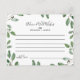 Ces cartes de conseils et de vœux de verdure estivale sont l'activité parfaite pour une réception de mariage élégante ou une douche de mariée. Le design présente un feuillage d'eucalyptus élégant dessiné à la main, inspirant l'atmosphère positive de l'été. Personnalisez ces cartes pour inclure le nom de la mariée et du marié.