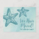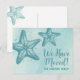 Une carte de faire-part émouvante. Faites savoir à vos amis et à votre famille que "nous avons déménagé" et changez d'adresse. Cette impression moderne, mignonne et simple, sur le thème de la plage, présente une couleur tonale avec un bleu aqua clair arrière - plan et des accents turquoise plus profonds d'étoiles de mer. Vous pouvez customiser toutes les couleurs du texte et de la police pour qu'elles correspondent, et même ajuster la couleur de l'étoile de mer! Blue Watercolor Moving Faire-part Postcard Mailer Beach Starfish Design Tropical Adresse