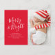Carte de faire-part de naissance de vacances en rouge script simple avec photo personnalisée.