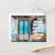 Cette carte de vœux colorée pour une nouvelle maison est parfaite pour féliciter pour une nouvelle acquisition. Le design urbain minimaliste et coloré présente un mur bleu, beige et marron et une porte bleue ainsi qu'un texte en calligraphie blanche « Nous vous souhaitons amour, bonheur et joie dans votre nouveau chez-vous » en superposition. Personnalisez le texte au recto si vous le souhaitez.