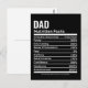 Carte de Fête des pères drôle personnalisée Papa Nutrition Facts