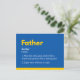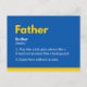 Cette carte de fête des pères super-héros en jaune et bleu a une définition du nom "Père" (1.Jouer comme un enfant, donner des conseils comme un ami et protéger comme un garde du corps. 2.Superhero sans cap). Cette joyeuse carte de fête des pères est unique et si réfléchie. Parfait pour montrer votre amour et votre gratitude sur la fête des pères. N'importe quel père adorera cette meilleure carte papa. :) Heureux vous ! Vous avez quatre choix de couleurs pour cette carte de fête des pères. Bonne fête des pères !