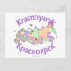Belle carte colorée réalisée à la main de la Fédération de Russie avec la ville de Krasnoyarsk marquée d'un drapeau. Le nom de la ville est également en russe, Красноярск. Cadeau d'adoption unique pour la Russie pour les familles avec des enfants de Krasnoyarsk. Conçu par Hendrika de www.RedThreadMaps.com