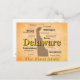 Papier antique vieilli Delaware image de la fierté d'état y compris carte silhouette avec villes, villes et surnom.