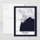 Carte postale avec une carte moderne teintée de l'Espagne d'Alicante avec une frontière bleu foncé.