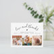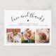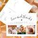 Créez votre propre carte de remerciement pour la baby shower avec un magnifique collage de photos pour remercier vos amis et votre famille d'avoir accueilli votre petit bout ! Le design élégant et minimaliste présente un collage de trois photos personnalisées en bas et une typographie élégante en haut avec votre message "amour et remerciements" dans un script chic et les informations de votre bébé. Il y a aussi un petit cœur mignon. Au dos, il y a un message personnalisable avec vos noms. Rendez-le unique en remplaçant le texte et les images en cliquant sur le bouton "Personnaliser". Cette carte d'annonce de naissance et de remerciement avec 3 photos fera un beau souvenir pour votre famille et vos amis !