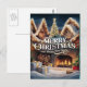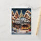 Une carte de Noël festive avec une cheminée chaleureuse ornée de bas, avec des cadeaux superbement emballés en dessous.