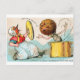 Postale Carte de Noël où le pudding attaque la dame aux oi