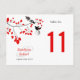 Cette carte de numéro de table élégante et romantique présente deux oiseaux noirs dans une branche d'arbre délicate avec des feuilles rouges. Les noms de la mariée et du marié ainsi que la date du mariage se trouvent sous la branche. Le numéro de table est clair et personnalisable. L'envers est la conception exacte pour qu'il puisse être vu de part et d'autre.