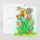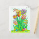 Dans cette illustration de Pâques adorable, un minuscule lapin de Pâques est assis dans une tulipe, la peignant avec des motifs d'œufs de Pâques. Autour de lui se trouvent d'autres tulipes qu'il a déjà peintes de rayures, de points et de vagues colorés. Envoyez cette carte mignonne à vos amis et à votre famille pour leur souhaiter un Joyeux Pâques.