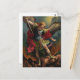 Le portrait coloré et dramatique de saint Michel l'Archange le montre dans la bataille avec Satan et les forces du mal. La peinture de Guido Reni est réinterprétée dans ce chromolithographe victorien affichant des couleurs brillantes contre un arrière - plan menaçant de nuages et de feu. Le revers de cette carte révèle une prière à saint Michel en espagnol.